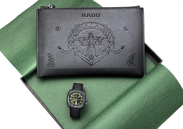 RADO瑞士雷達表特邀澳門本地藝術家百強專門設計了一款皮包。百強是著名的插畫藝術家、視覺藝術家和金屬樂隊“刃記”的主音歌手。他特別為這款腕錶,創作了一幅名為“希望之光”的插畫。